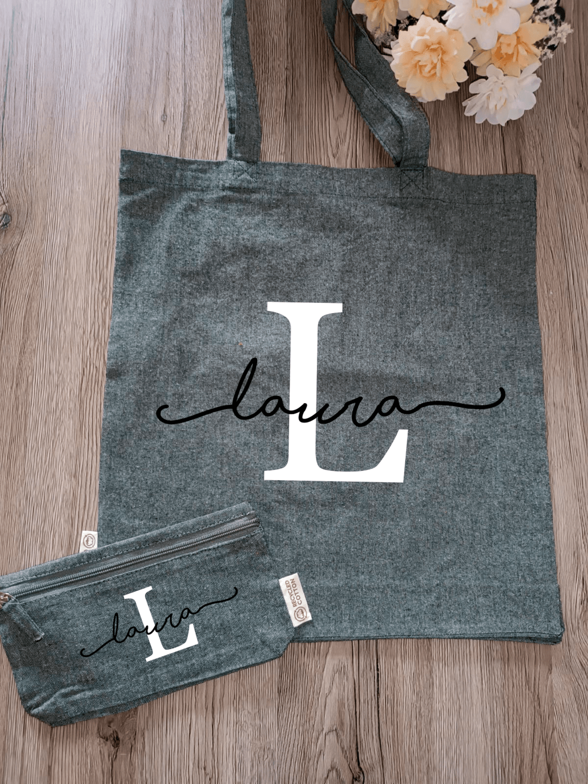 Conjunto de tote bag y neceser "Inicial y nombre"