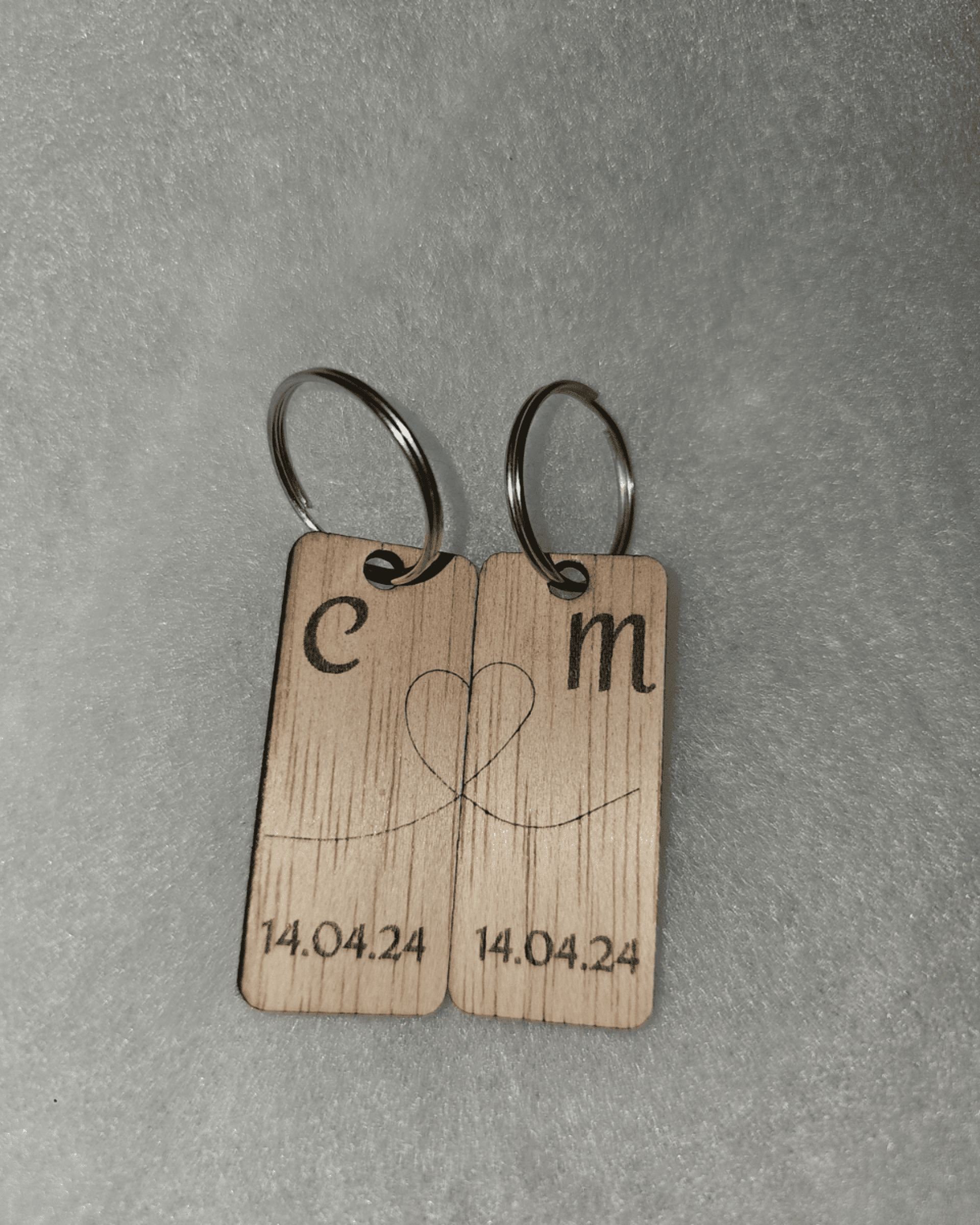 Pack de 2 llaveros de madera corazón grabado - fecha