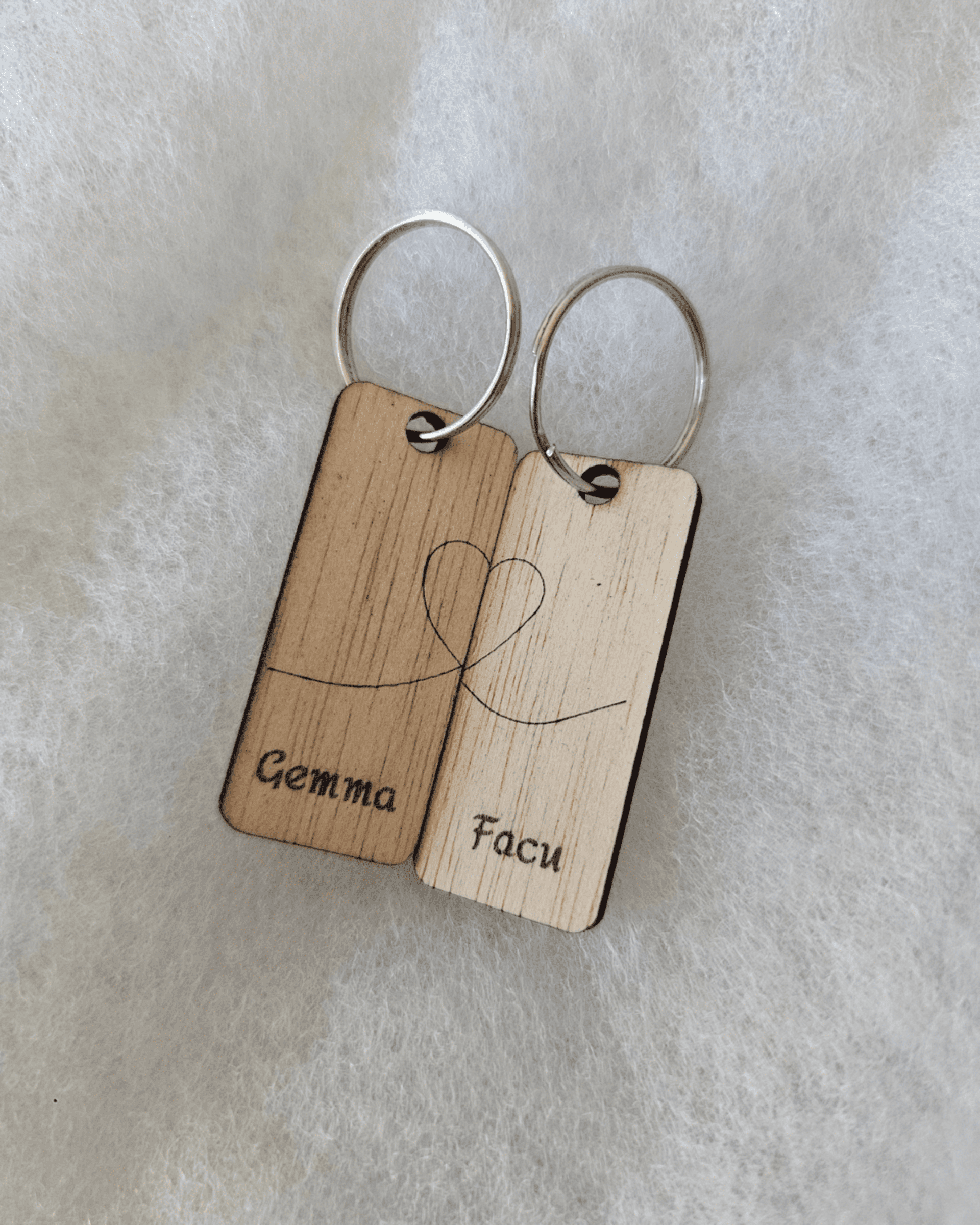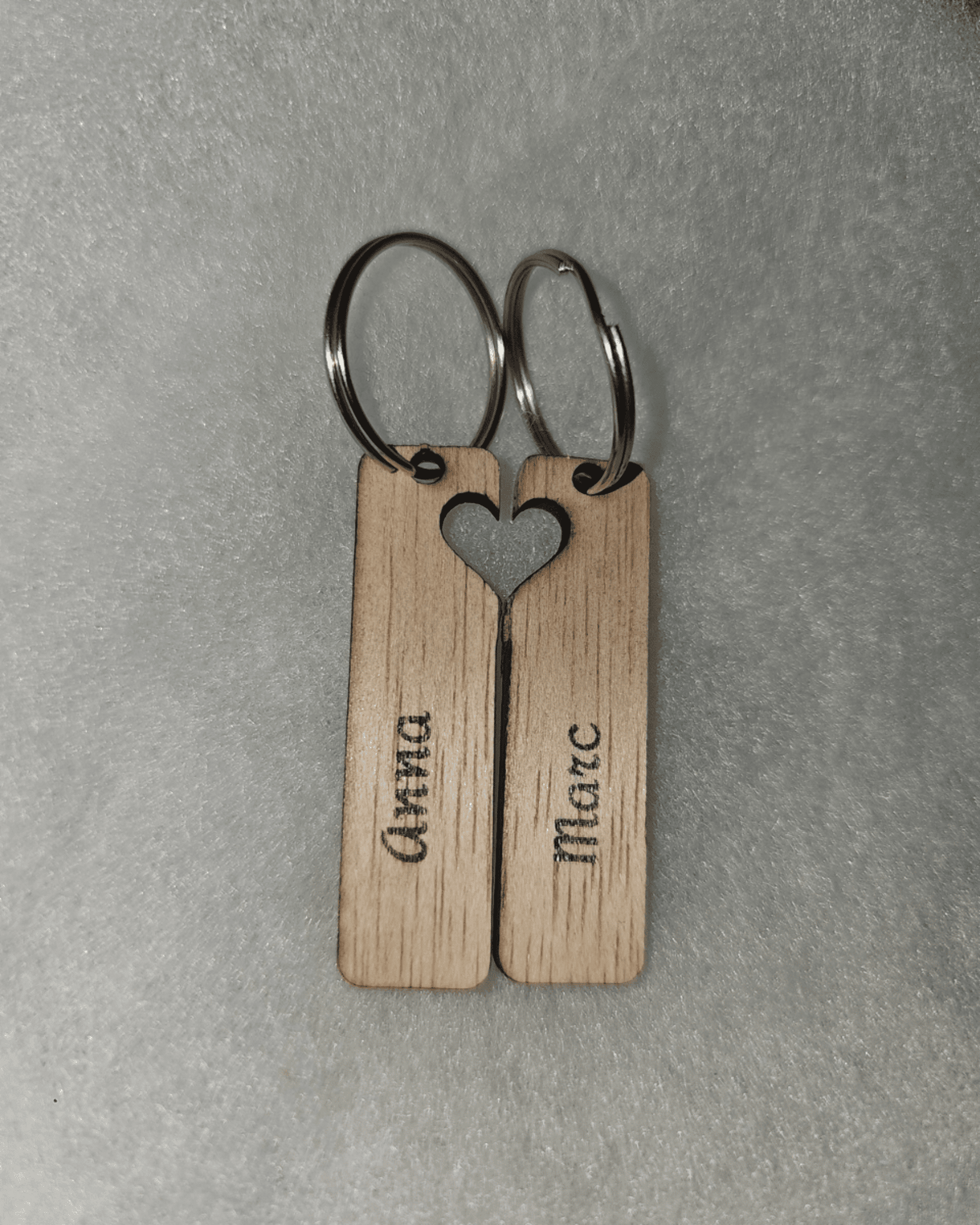 Pack de 2 llaveros de madera corazón grabado - nombres
